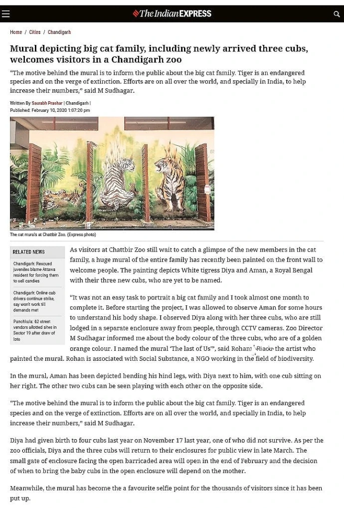 Created in collaboration with Chhatbir Zoo and Social Substance, this mural stands as a visual appeal for empathy, awareness, and responsibility toward wildlife conservation.
